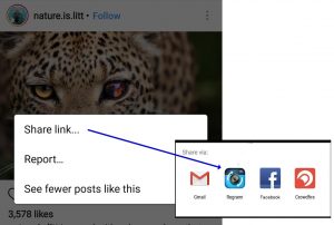 - Then just click on “Share Link” and then select Regrann from the chooser menu.